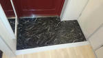 玄関にプリントタイルを貼るのに接着剤を塗って