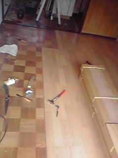 今回は、3号室のリビングと7号室の1階部分にフロア材を張ってきた。