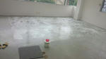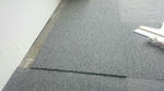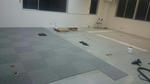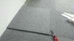 接着剤が透明になりはじめたらタイルカーペットを貼っていく