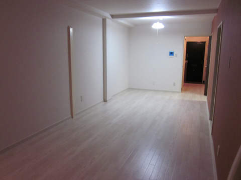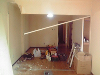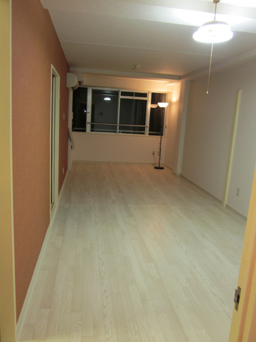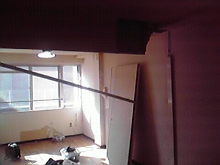 続いている6畳の部屋の壁を壊して15.5畳の大型LDKに改造した。