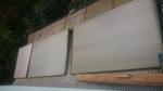 廃棄する雨戸を水平近くになるように打ち付けた。