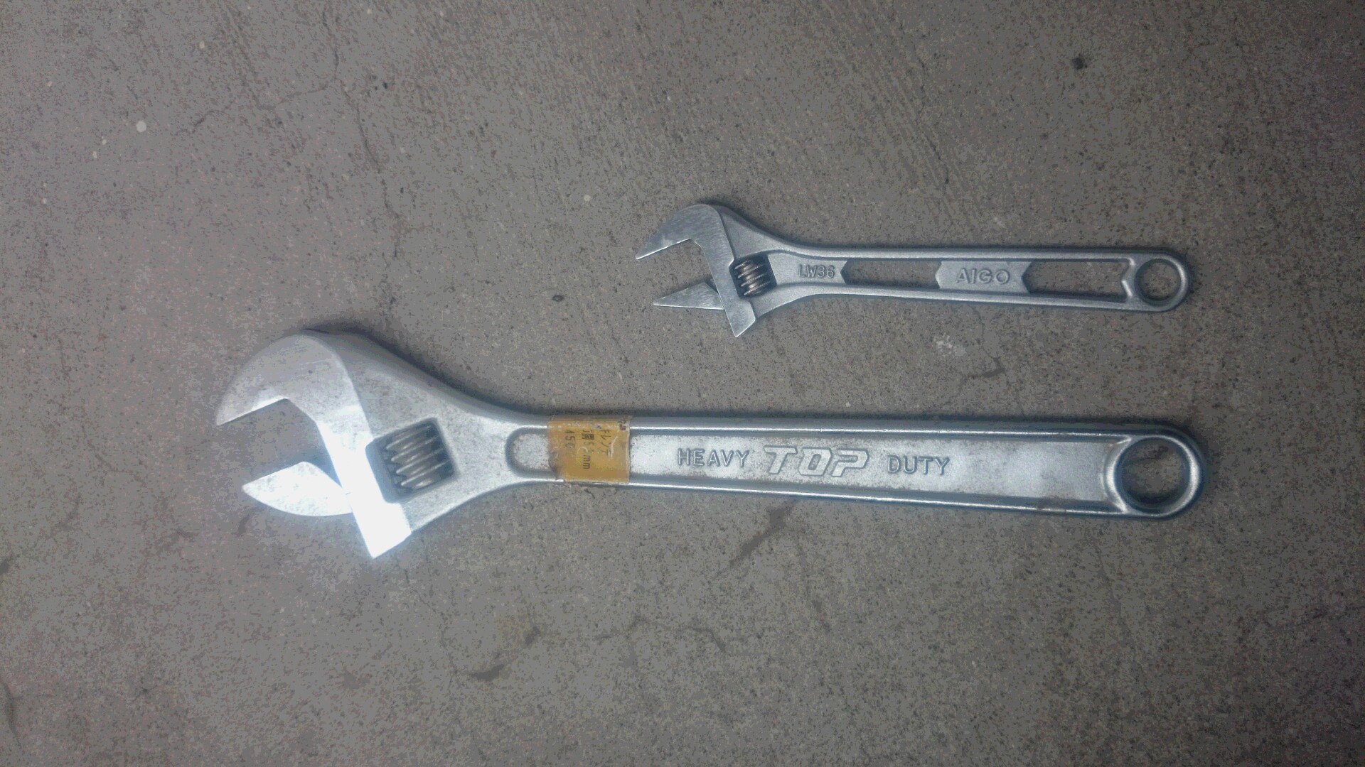 一番下のでっかいパイプレンチは昨日多摩っ子さんから借りてきた。