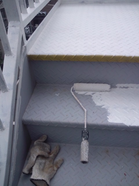 鉄階段なので、油性1液エポキシ錆止めを下塗り材にした。