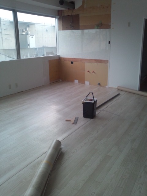 床を張るのもたいへんである。