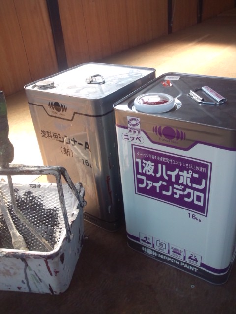 鉄部なので下塗り材は、「1液油性エポキシ錆び止め材」である。