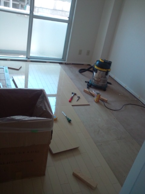本日は、DKにフロア材を張ったのだが