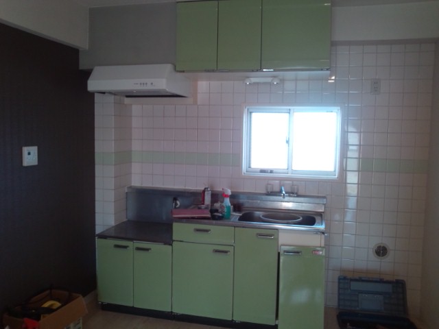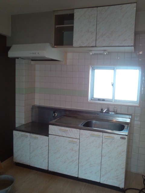 扉を一枚取り付けてないのは、換気扇まわりのコーキングがまだやってないからだ。