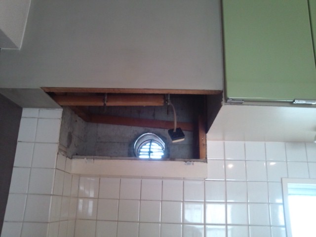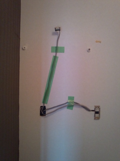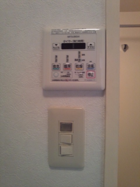コントローラーの配線は、浴室照明スイッチの上に穴を空け