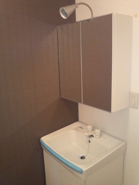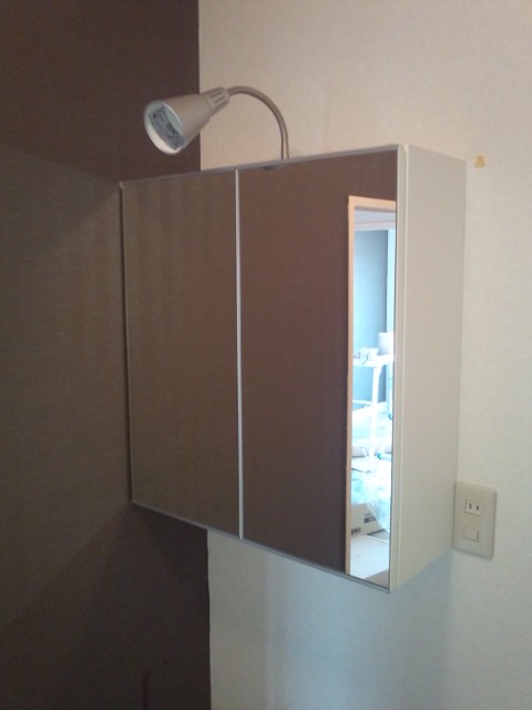 鏡は、池屋のミラーキャビネットを取り付けるのだが