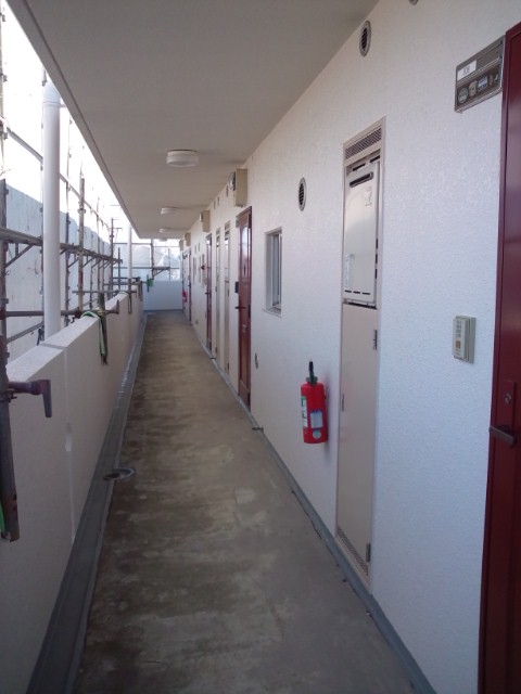外壁塗装・通路&階段長尺シート張り・ベランダ防水塗装等である。