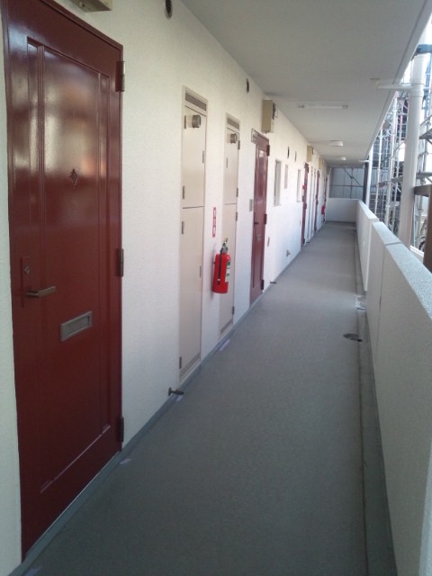 通路と階段部床は、長尺シートを貼り
