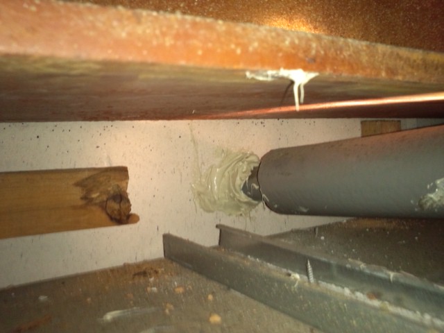 ついでに、エアコンの排水管の穴のコーキングもダメだったのでやり直した。
