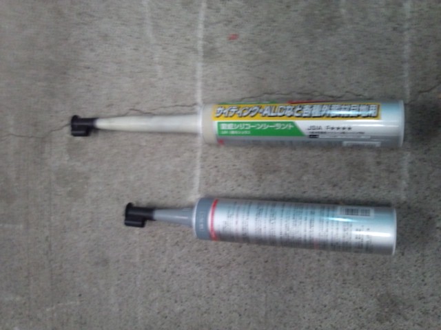 グレーとアイボリーのコーキング剤が混ざっているのは