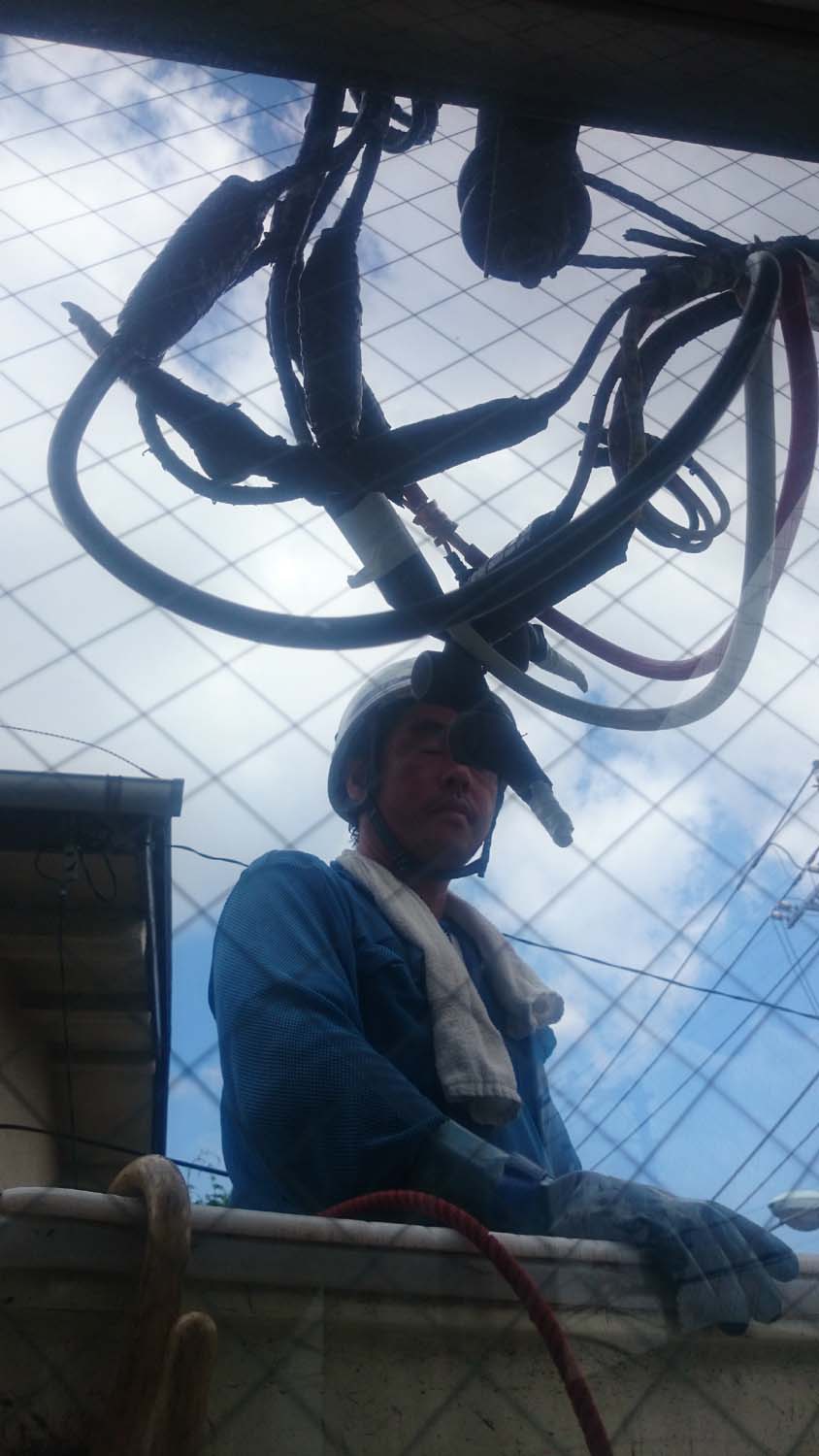 作業しているのは東電の外注の関電工のそのまた下請け業者だ。