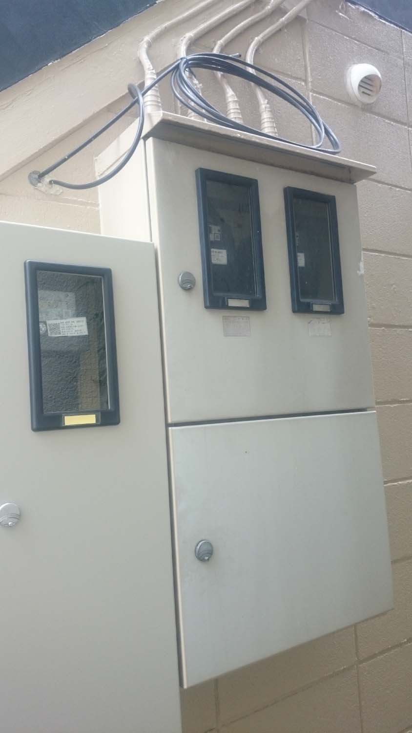 外の配電盤に1・2階と共用部のメーターが入った。