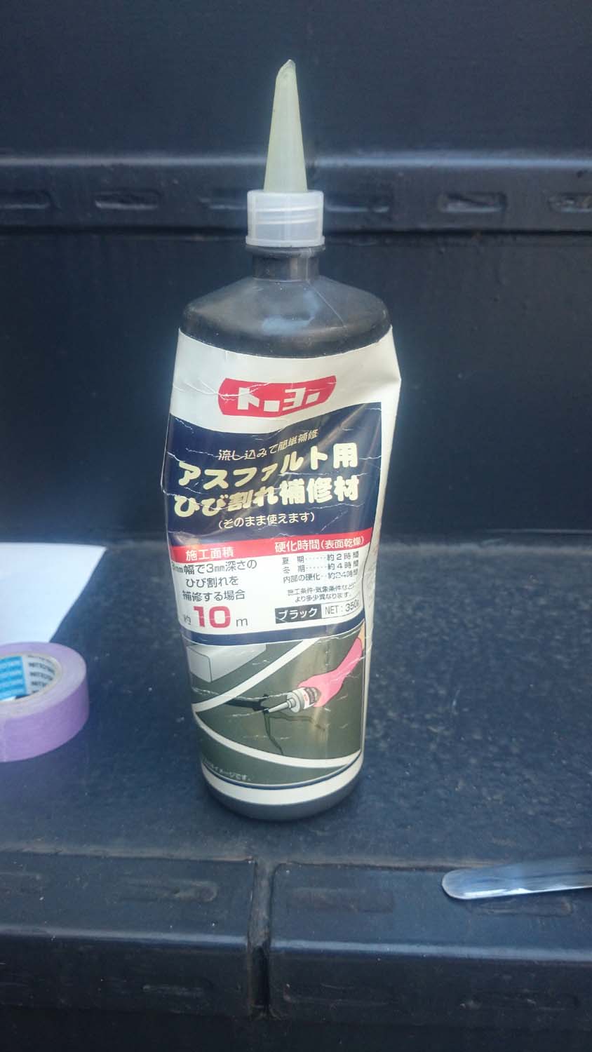 今度は、1号屋上の防水補修で使ったアスファルトの補修材を使ってみた。