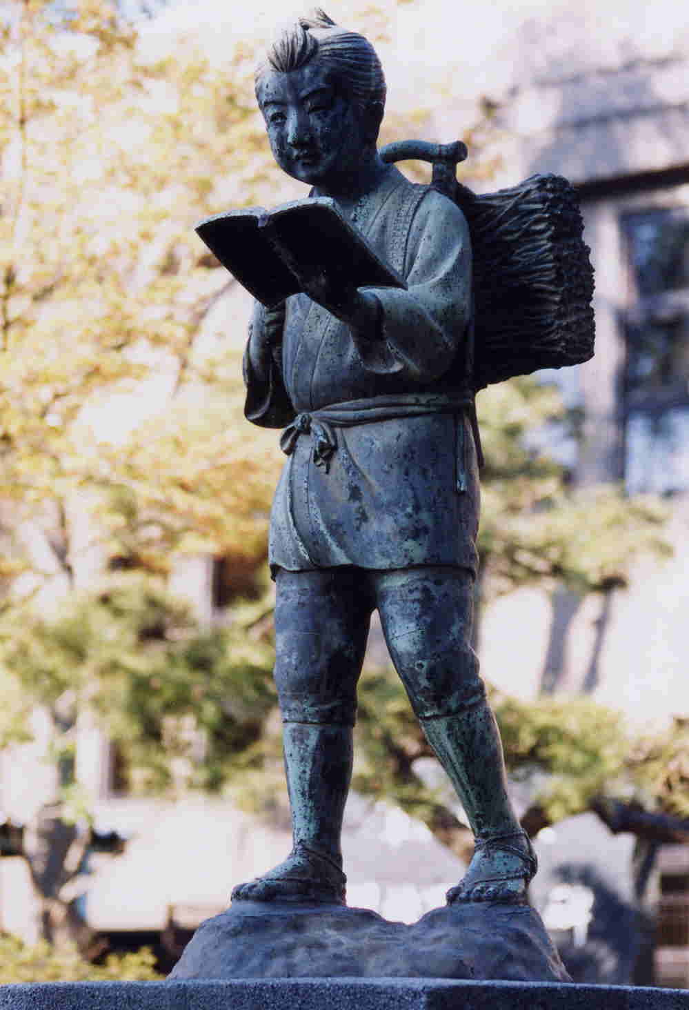 薪を背負って本を読みながら歩いている金次郎さんの銅像だ。