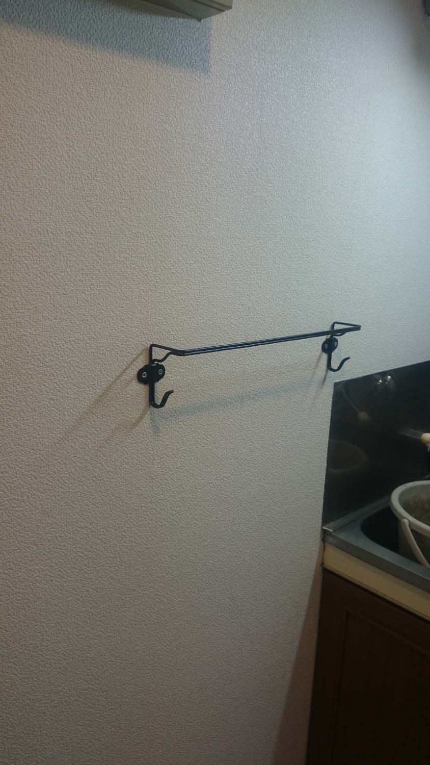 このタオル掛け、イケヤで380円くらいだったと思う(^^)