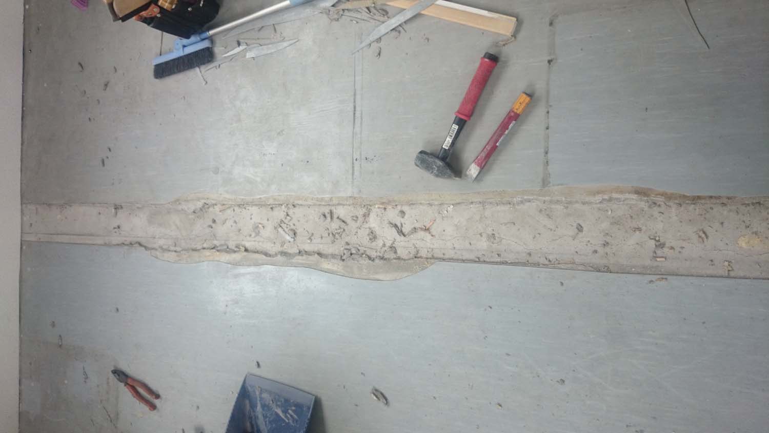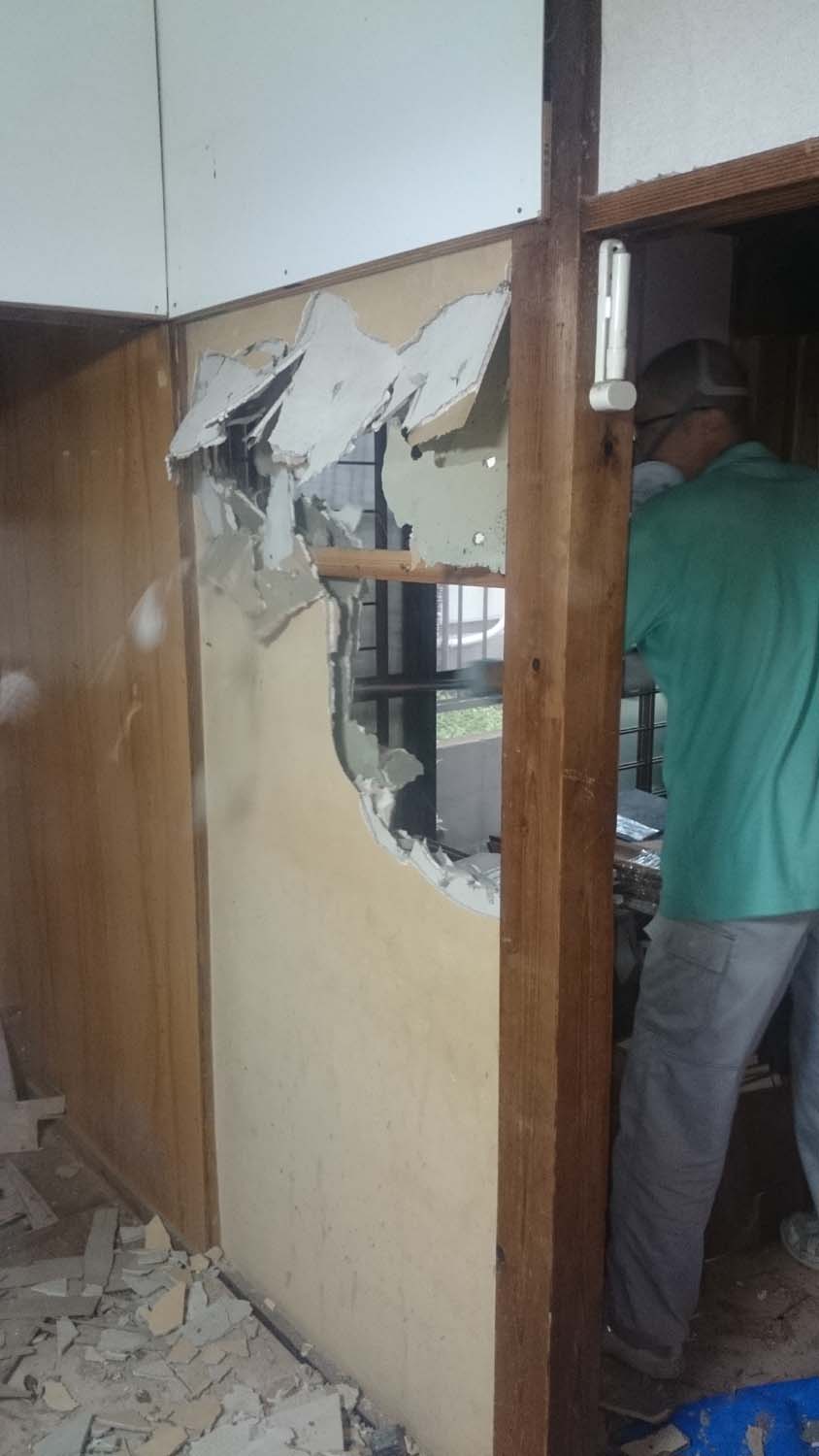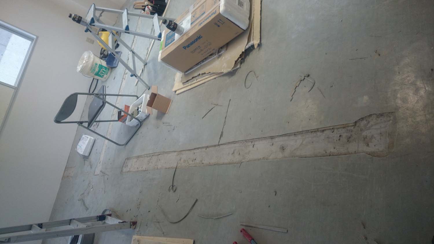 壁を解体した所の床の部分は凹んでいるので