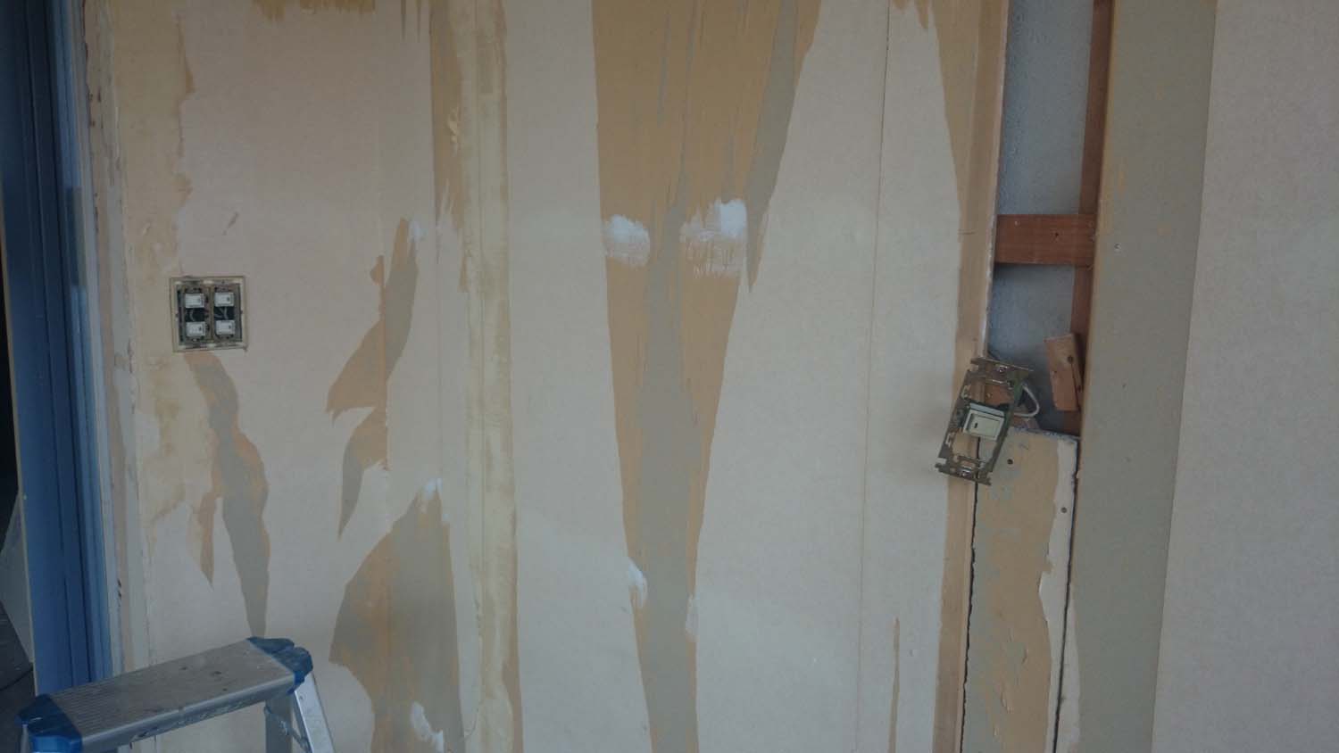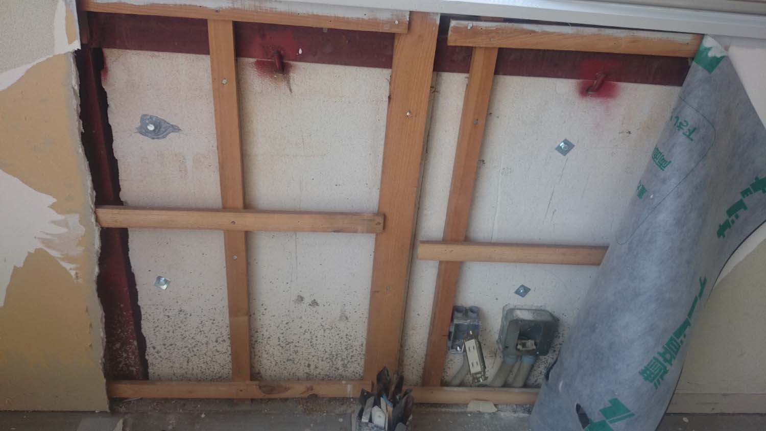 今回石膏ボードを剥がしたところだけでも内側から補修しておいた。