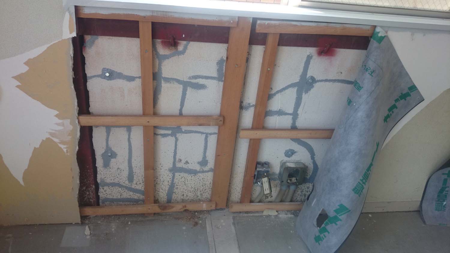 窓の一部を埋めて壁にすることに気づいて手が止まった・・・