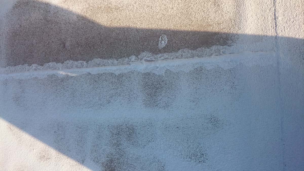 以前にアスファルト補修材&トップコート塗りした屋上の点検をした。