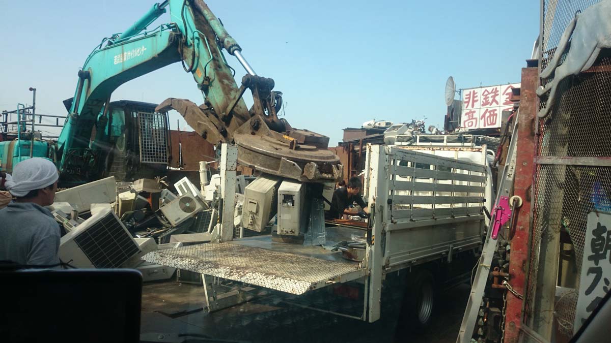 室外機をいっぺんに3台くらいマグネットで持ち上げていた。