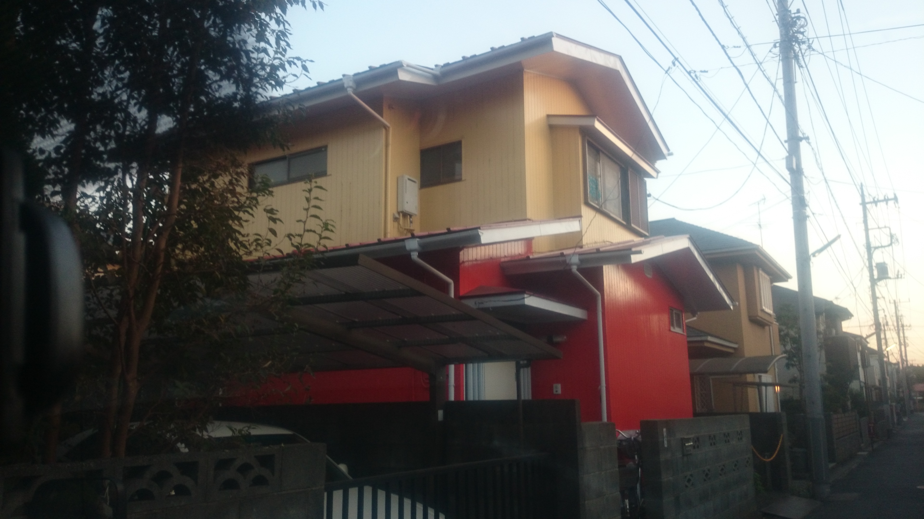 オレンジと淡い黄色に破風板が白できれいに塗られている。