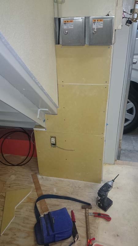 排水管をボードで囲ったら左側が狭くなってしまったのだ