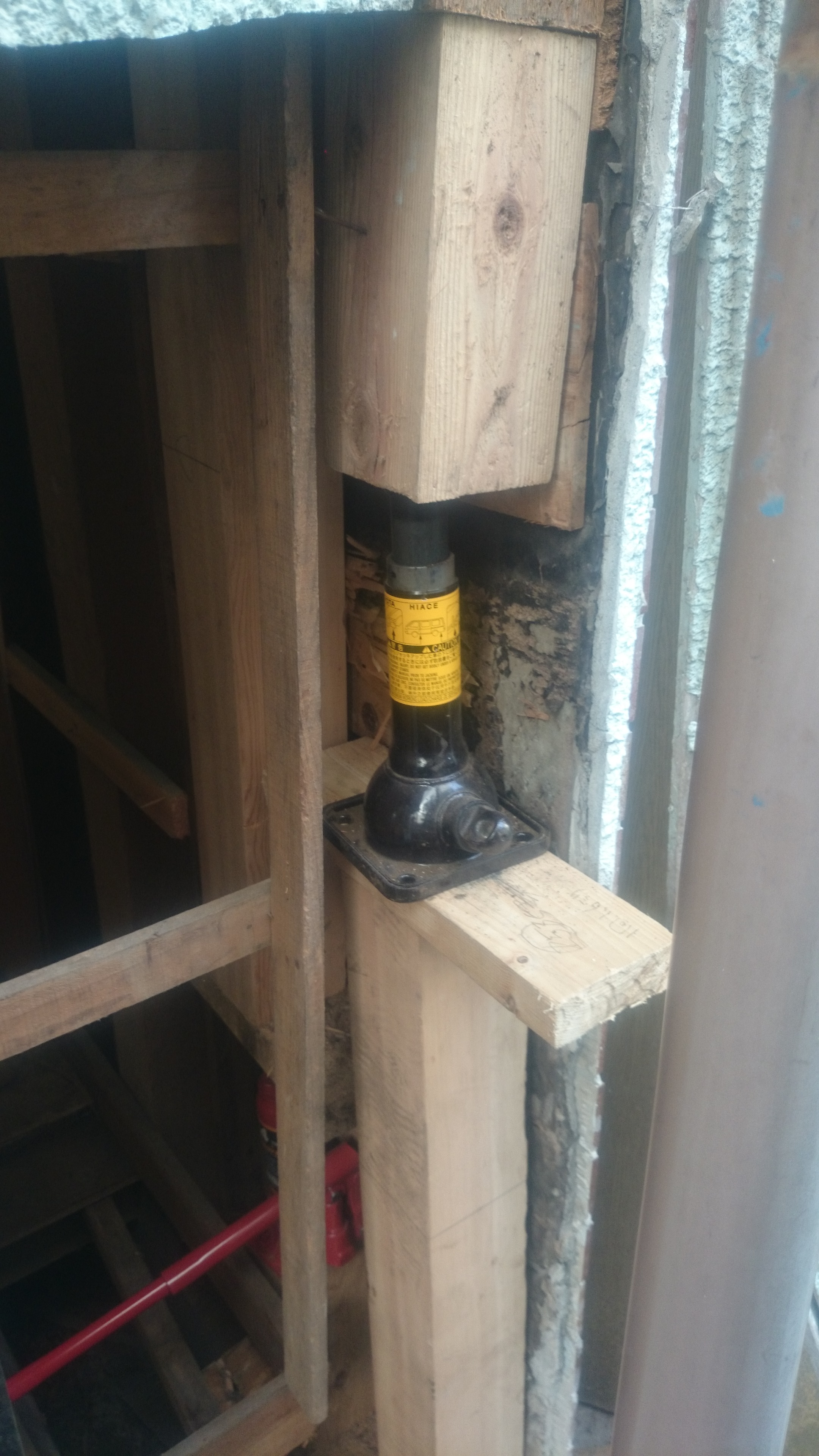 このジャッキは、柱を切るために仮にかけたもので、