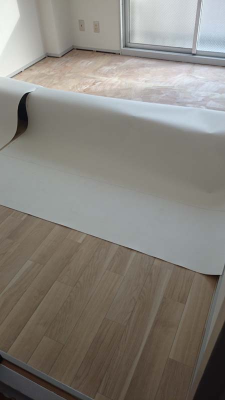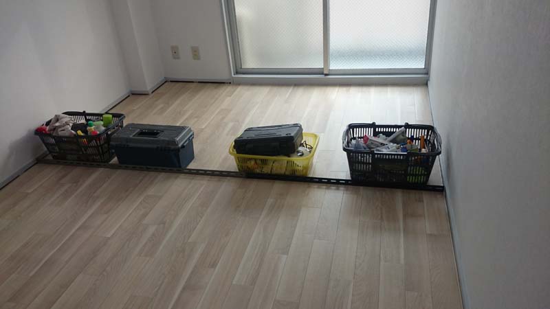 CF張りが1室とソフト巾木貼りとトイレの仕上げだけだ。