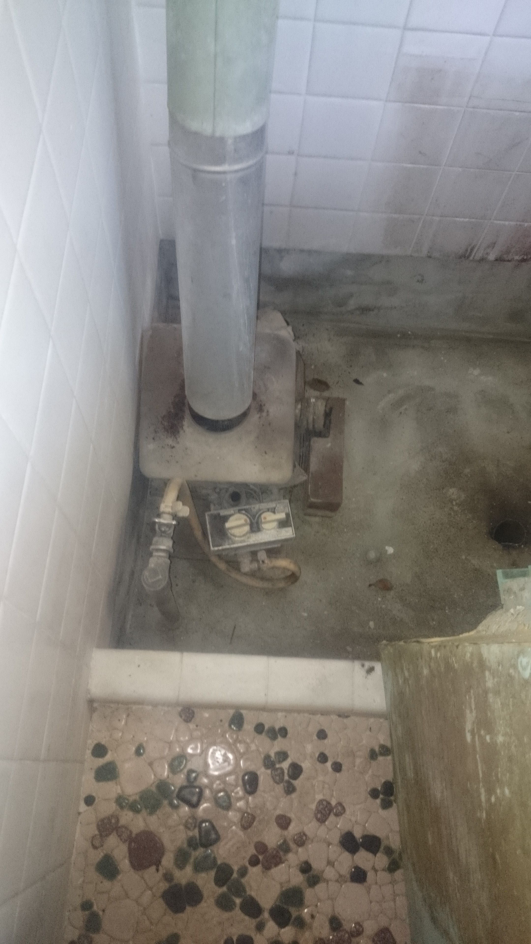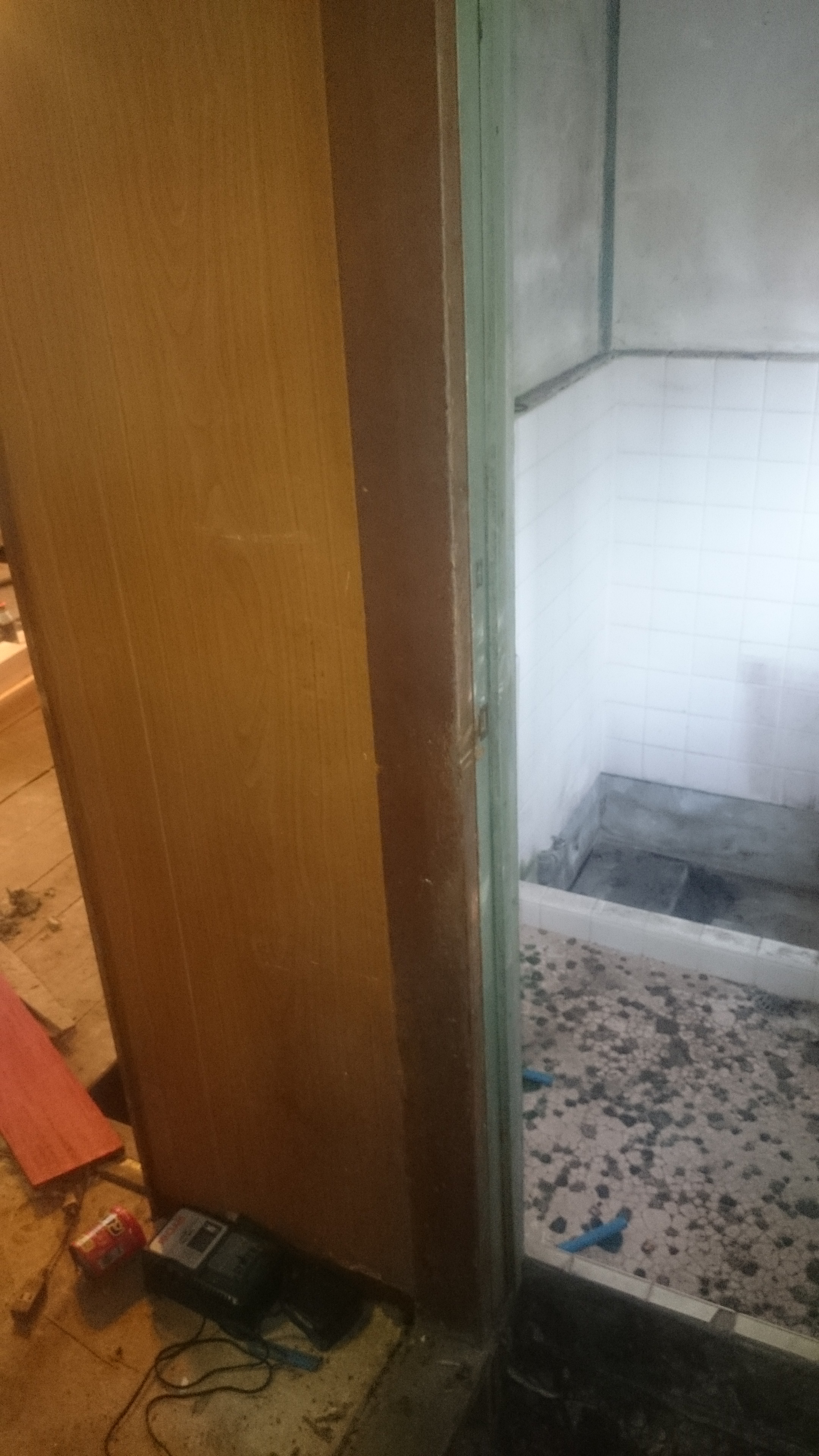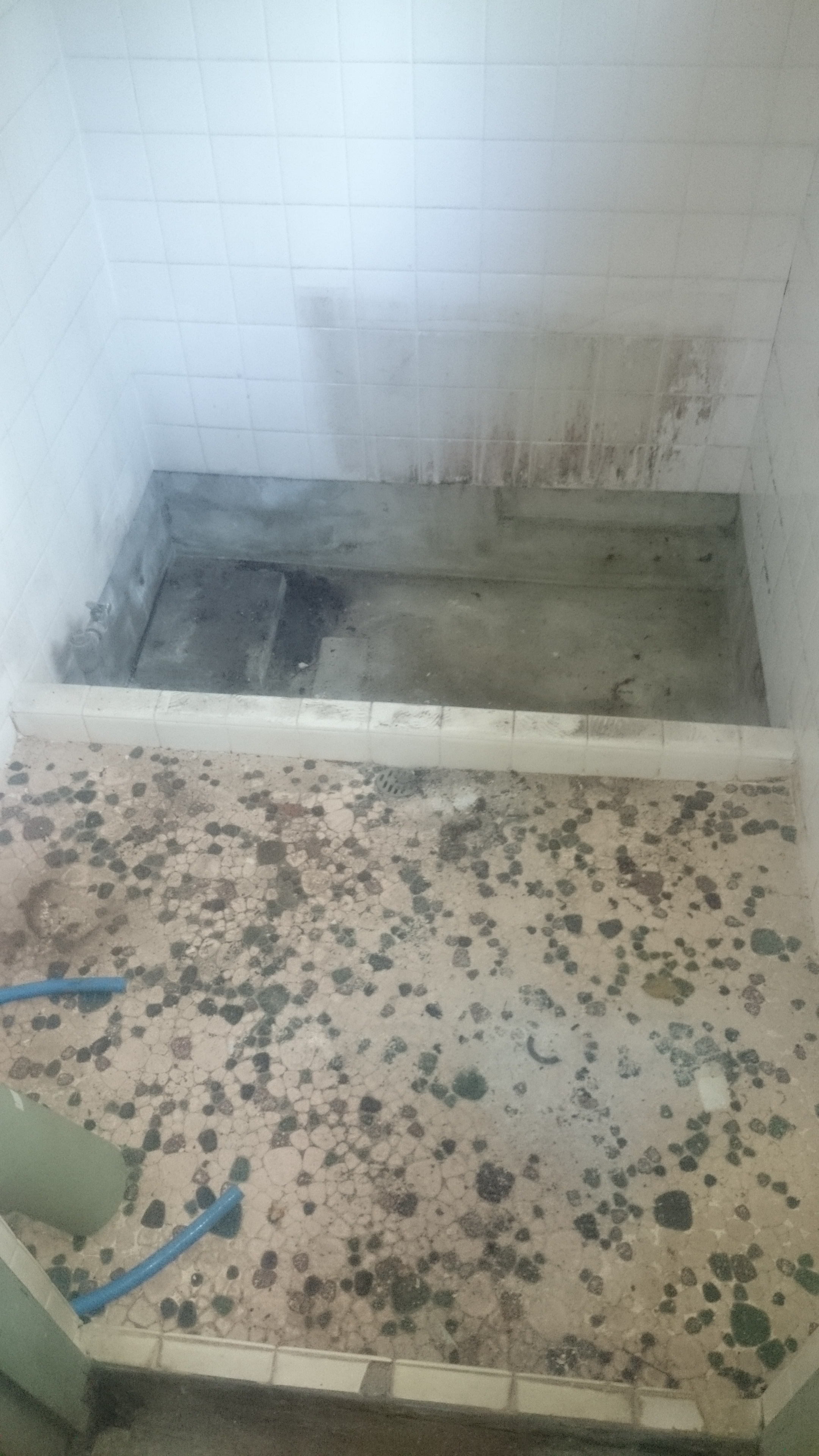 浴室入口右側の外壁側は土台を切ってコンクリートになっていた。