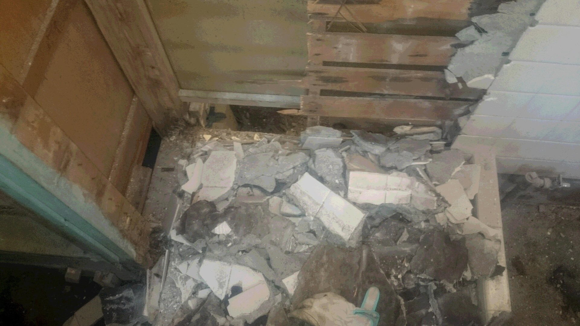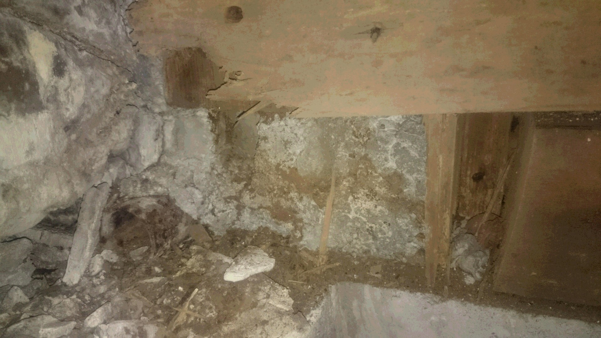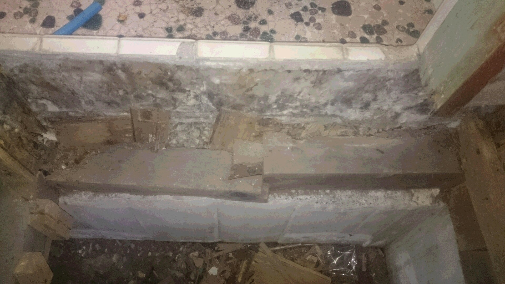 浴室入口右側の外壁側は土台を切ってコンクリートになっていた。