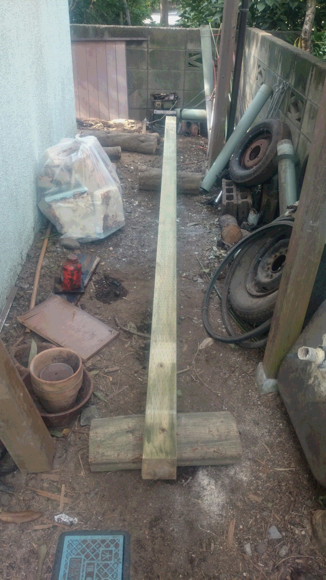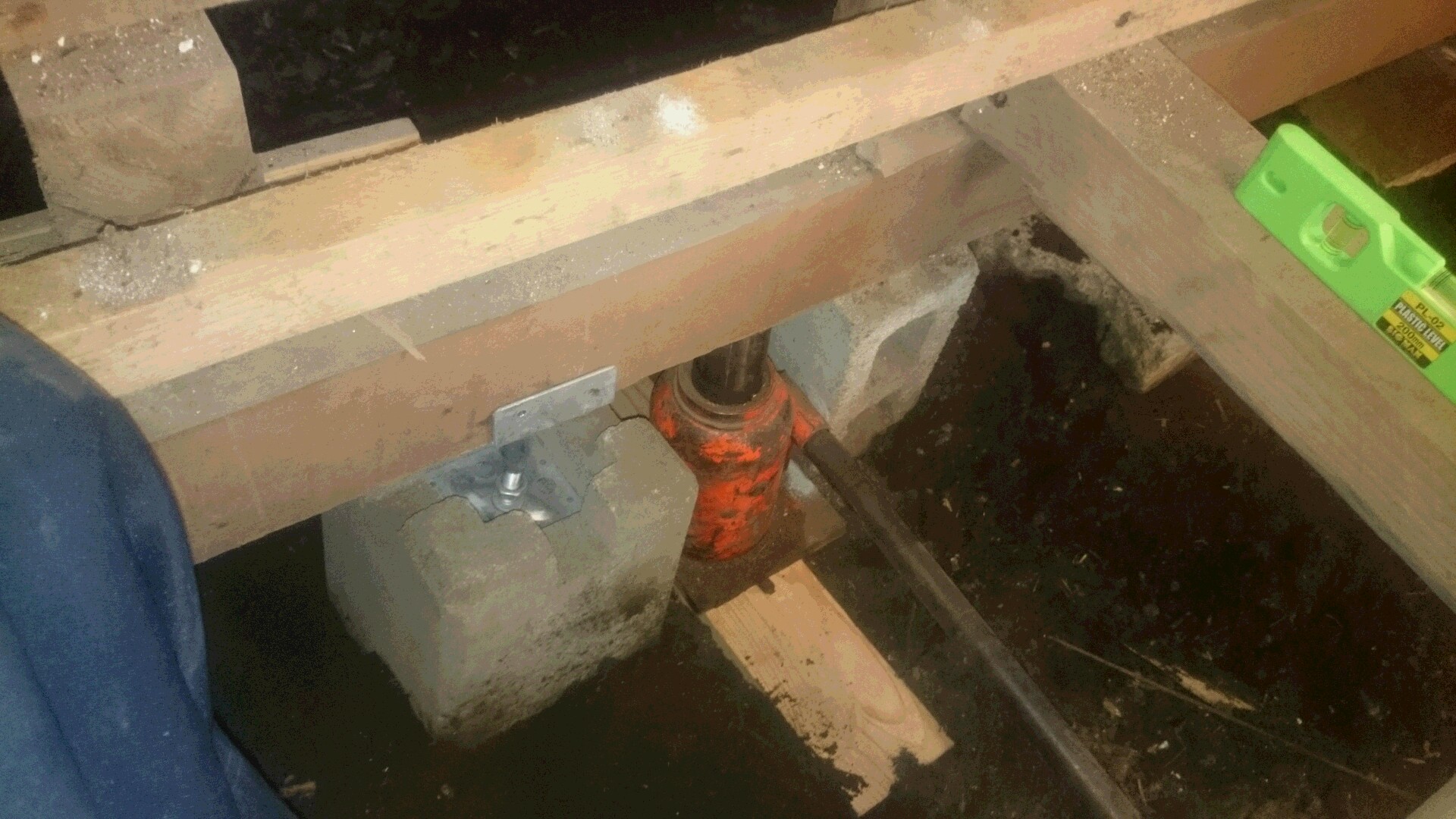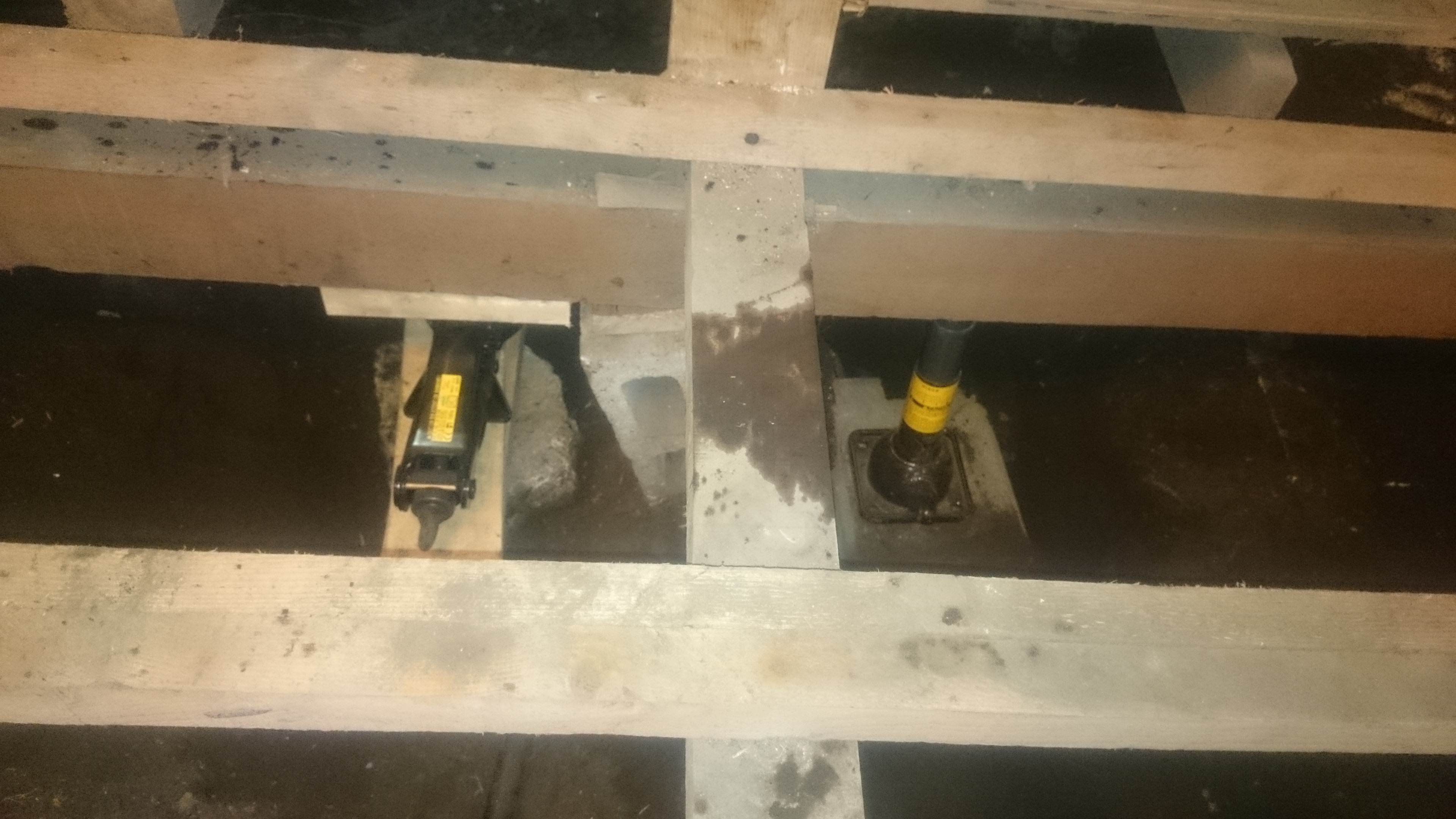 真ん中の柱は20ミリくらい下がっているのでジャッキアップした。