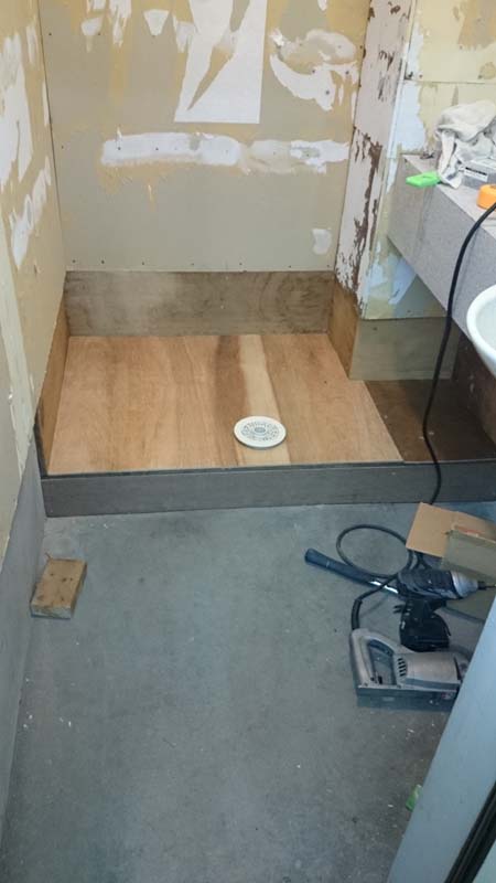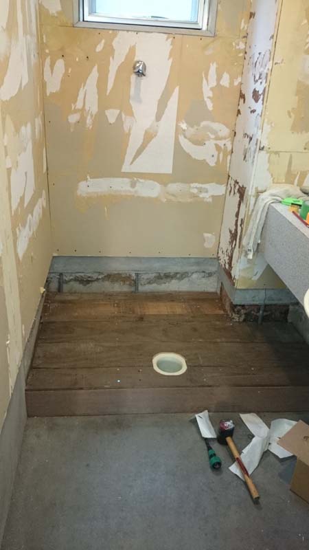 今日は、洗濯機置場の下地を仕上げる。