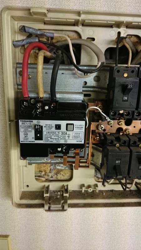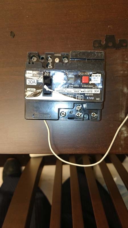 1号の一室で漏電ブレーカーが壊れたので交換した。