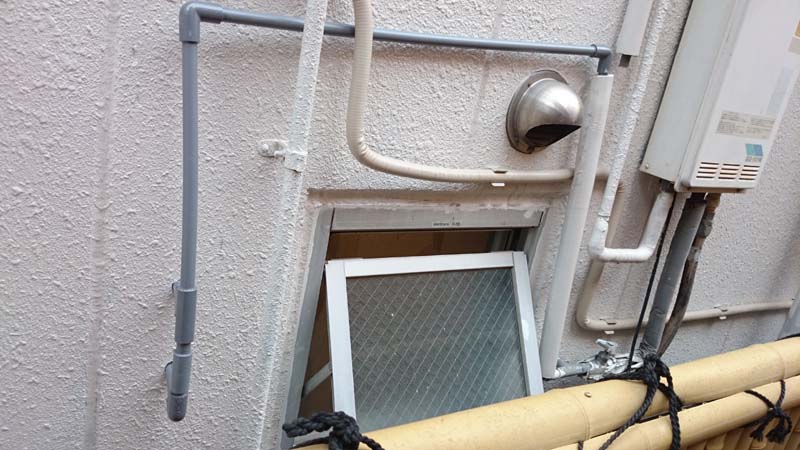外壁の外に水道管を出した。