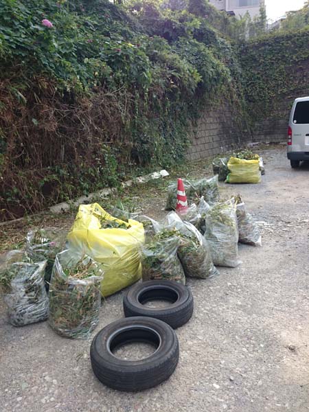 草を集めて袋に入れるのにも2時間ほどかかったが・・(^^;