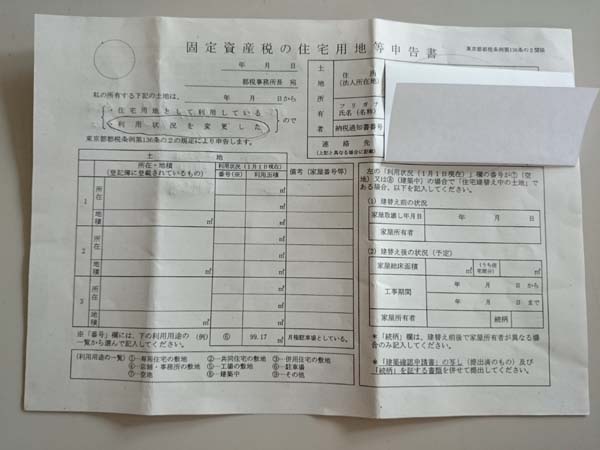 「固定資産税の住宅用地等申請書」ってのが届いた。