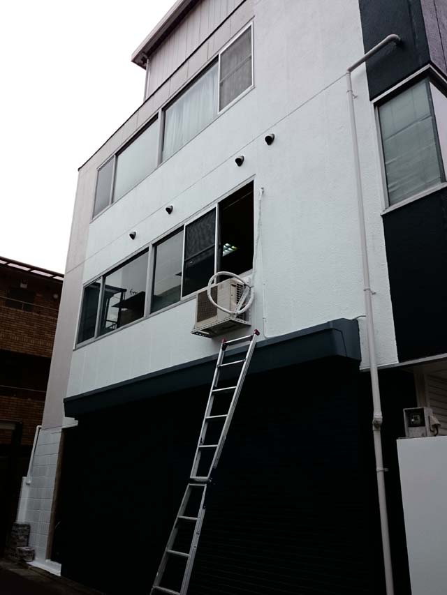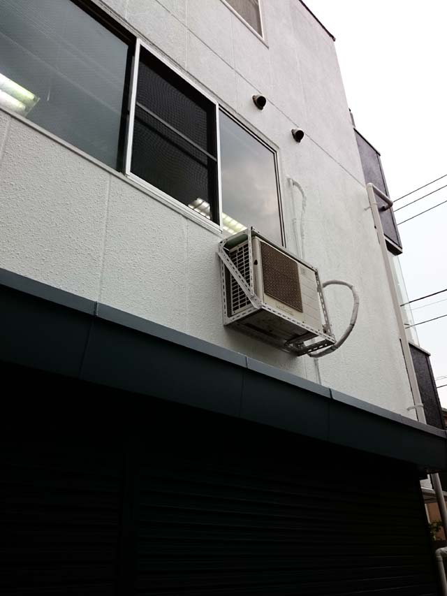 一人で室外機を持ち上げて窓から下ろすのは結構怖いものがある。