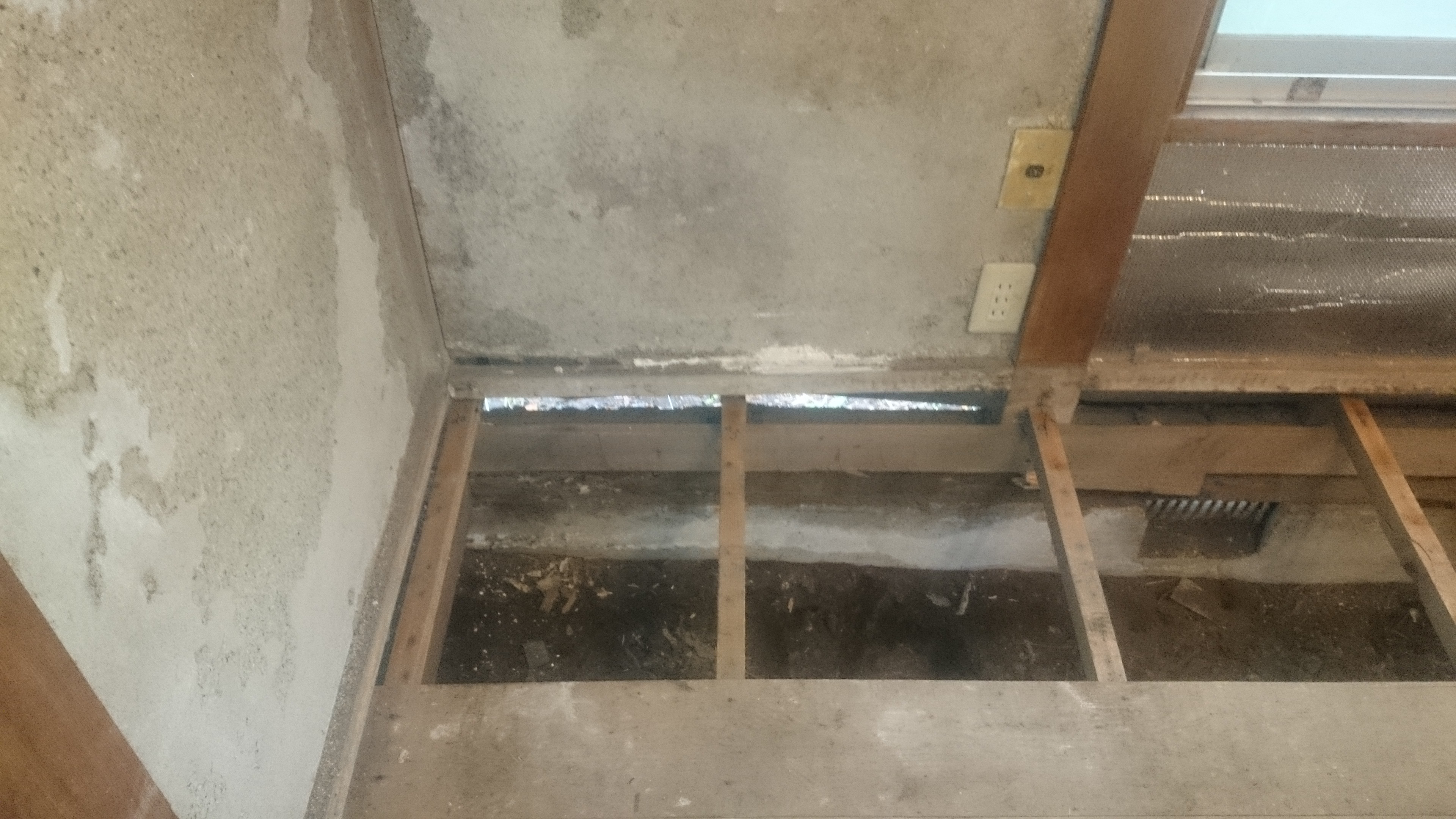 床板を外した所から隙間が空いていて外が見える(^^;