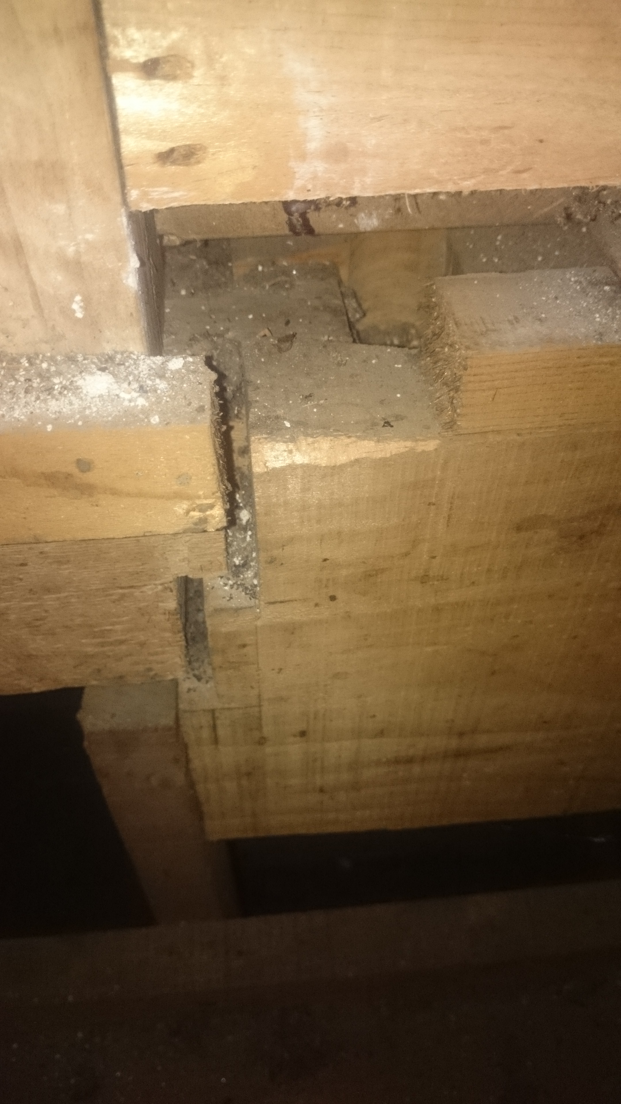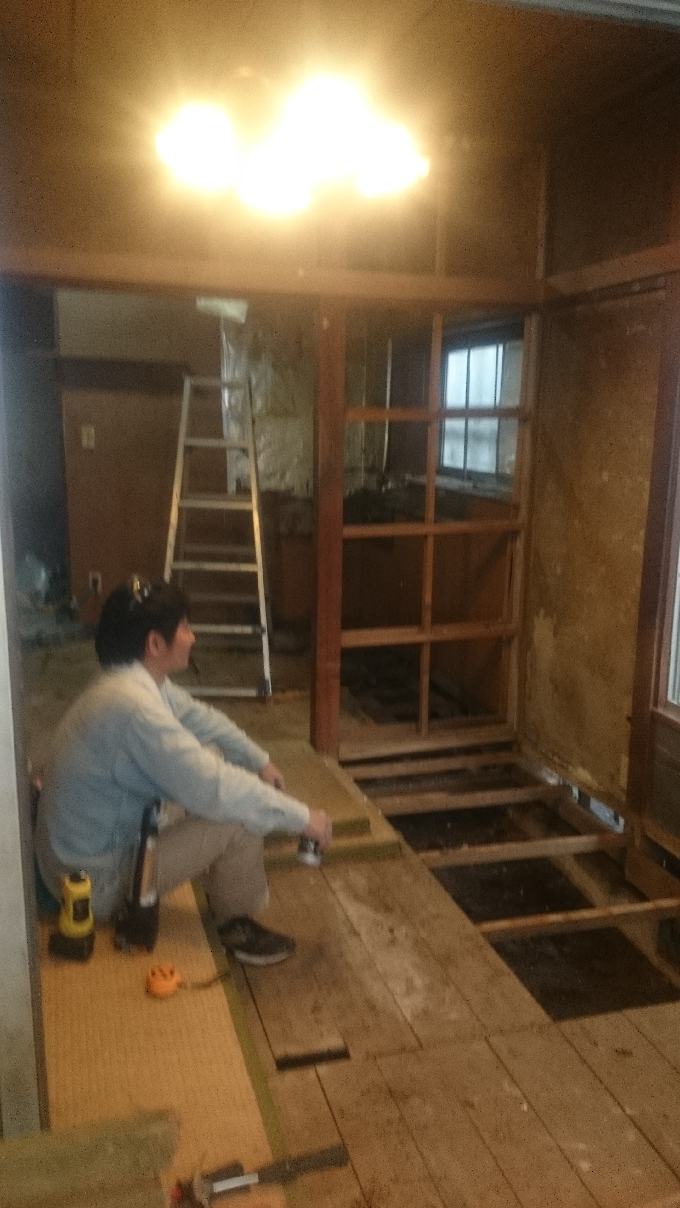 そんで、2階へ上がって畳をはがして1階の梁をのぞく