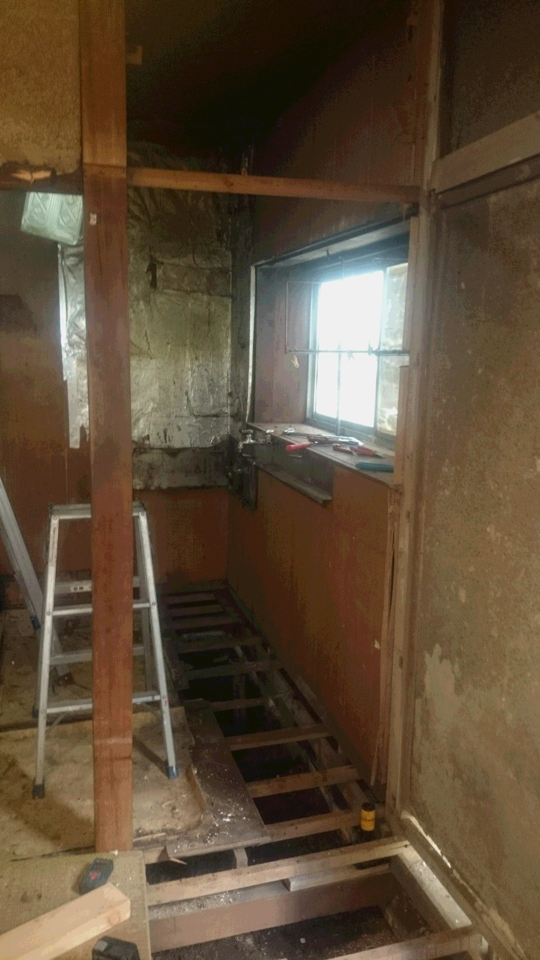 壁の一部を壊して下地も取り払う。