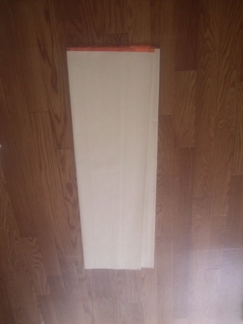 これは、糊がついていない状態なので別料金(60円/m税別)を払ってクロス糊をつけてもらう必要があります。