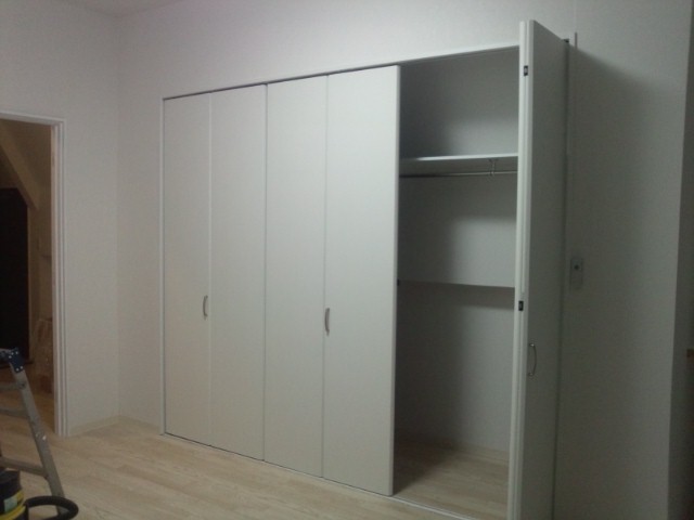 棚板・パイプ・ドアを取り付ければ完成だ。