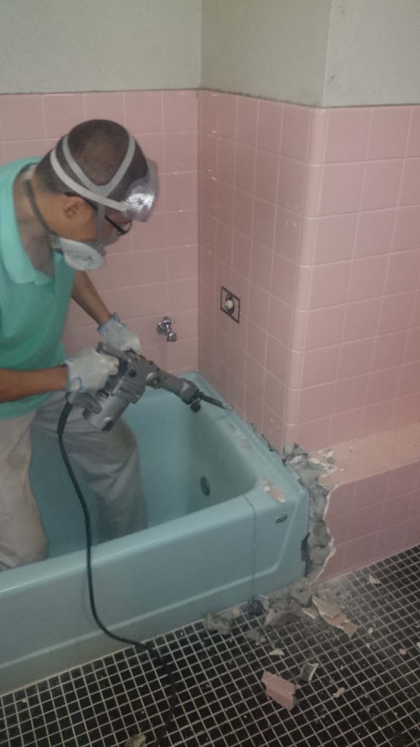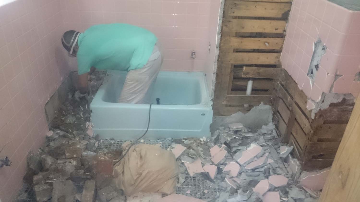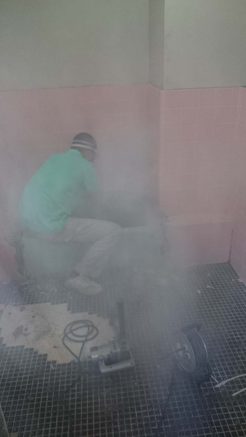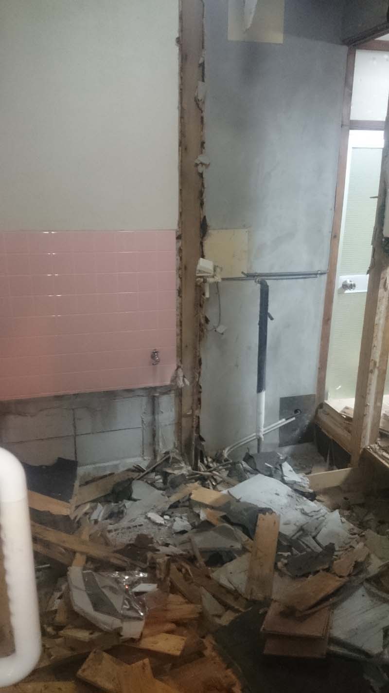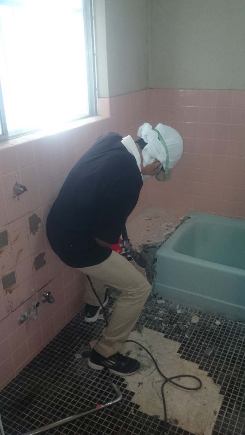 コンクリートハンマーで浴室を壊す