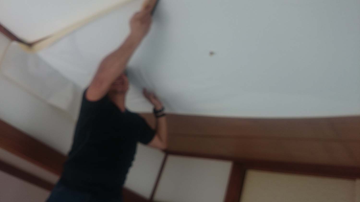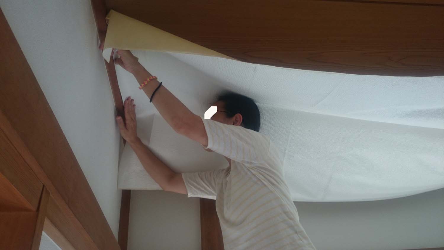 そんで、天井にクロスを張り始める。
