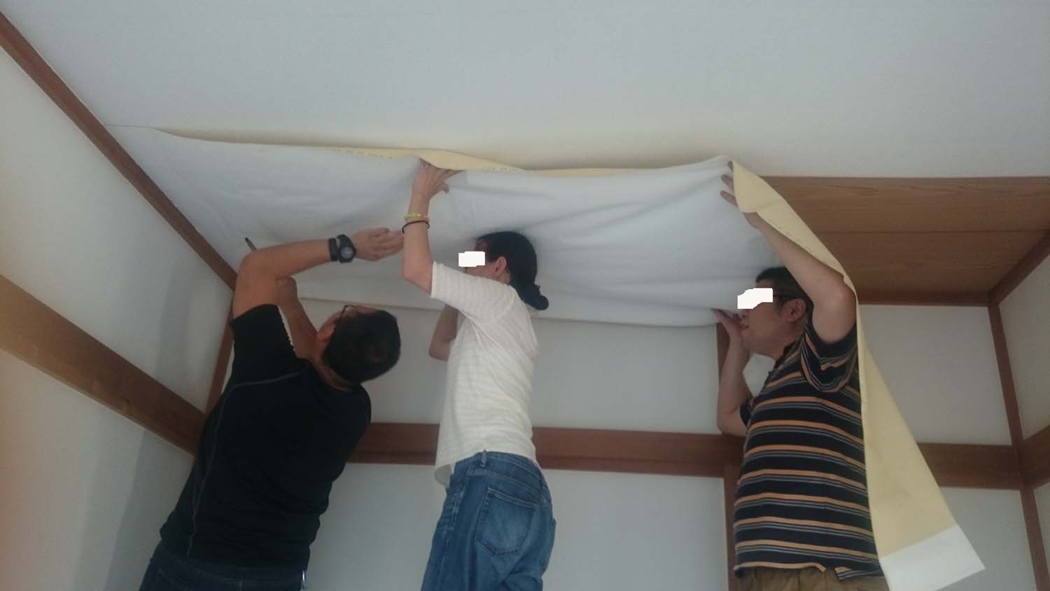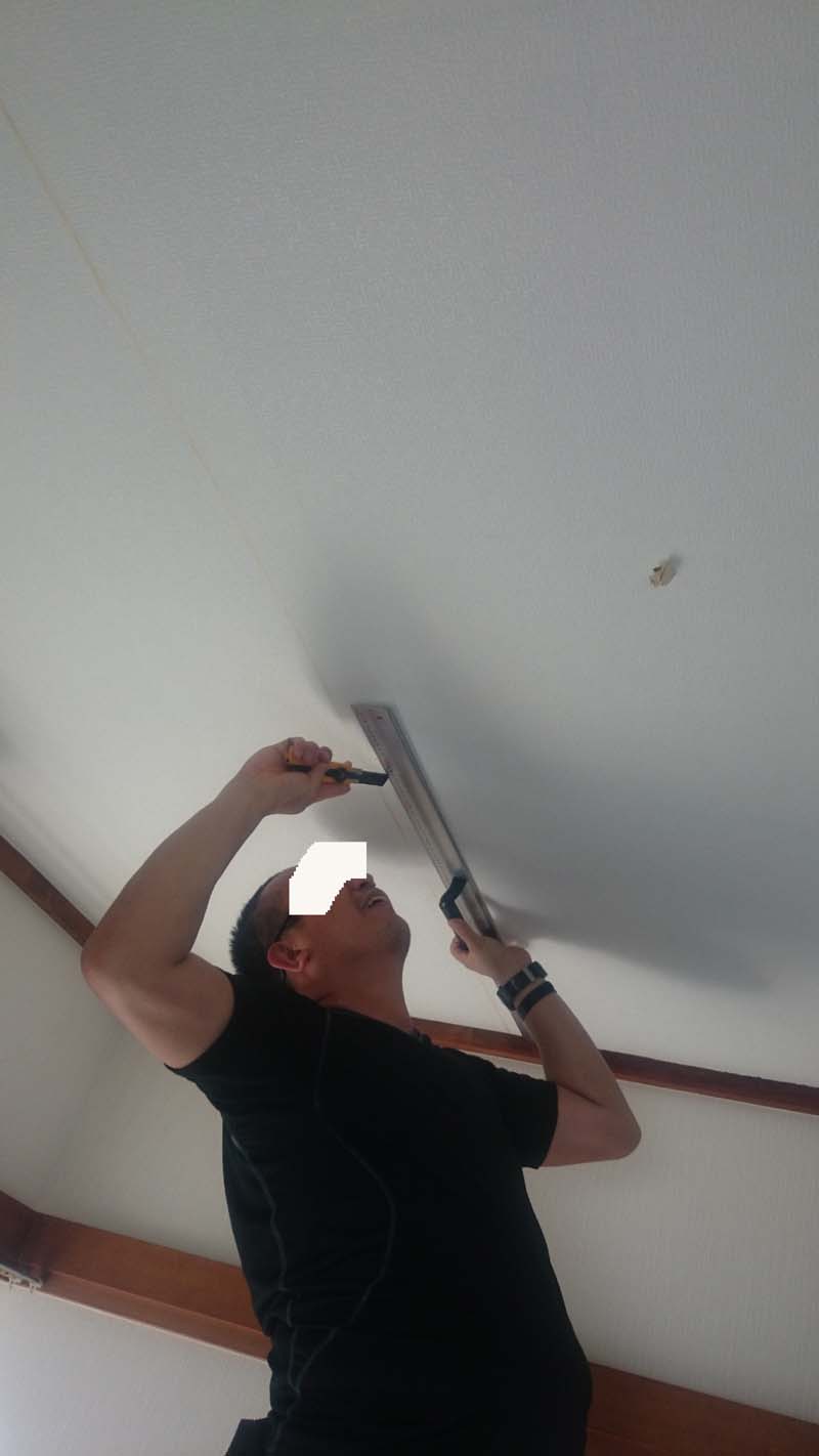 さて、初心者ばかりで天井にクロスを張ることができるのだろうか(^^)