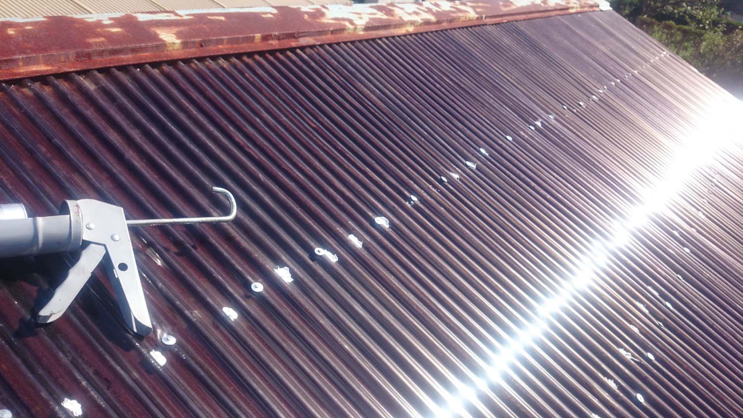 ほんとは、トタンを剥がしてから新しく張るべきだろうが