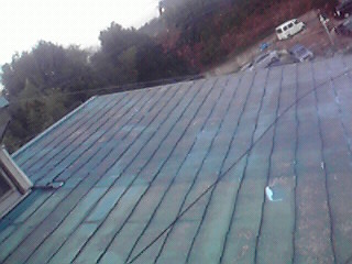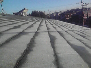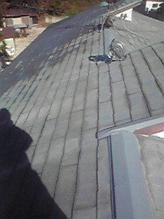 以前に塗装した2号のアスファルトシングルの屋根と比べると